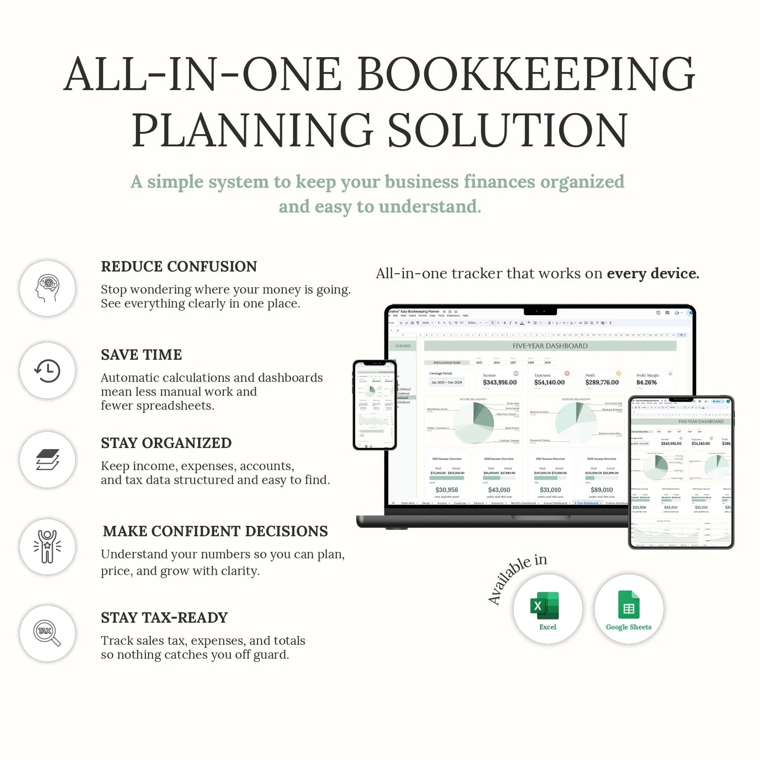 The Easy Bookkeeping Planner keeps everything in one place, updates automatically, and shows you exactly how your business is doing so you can focus on running it, not fixing your numbers.